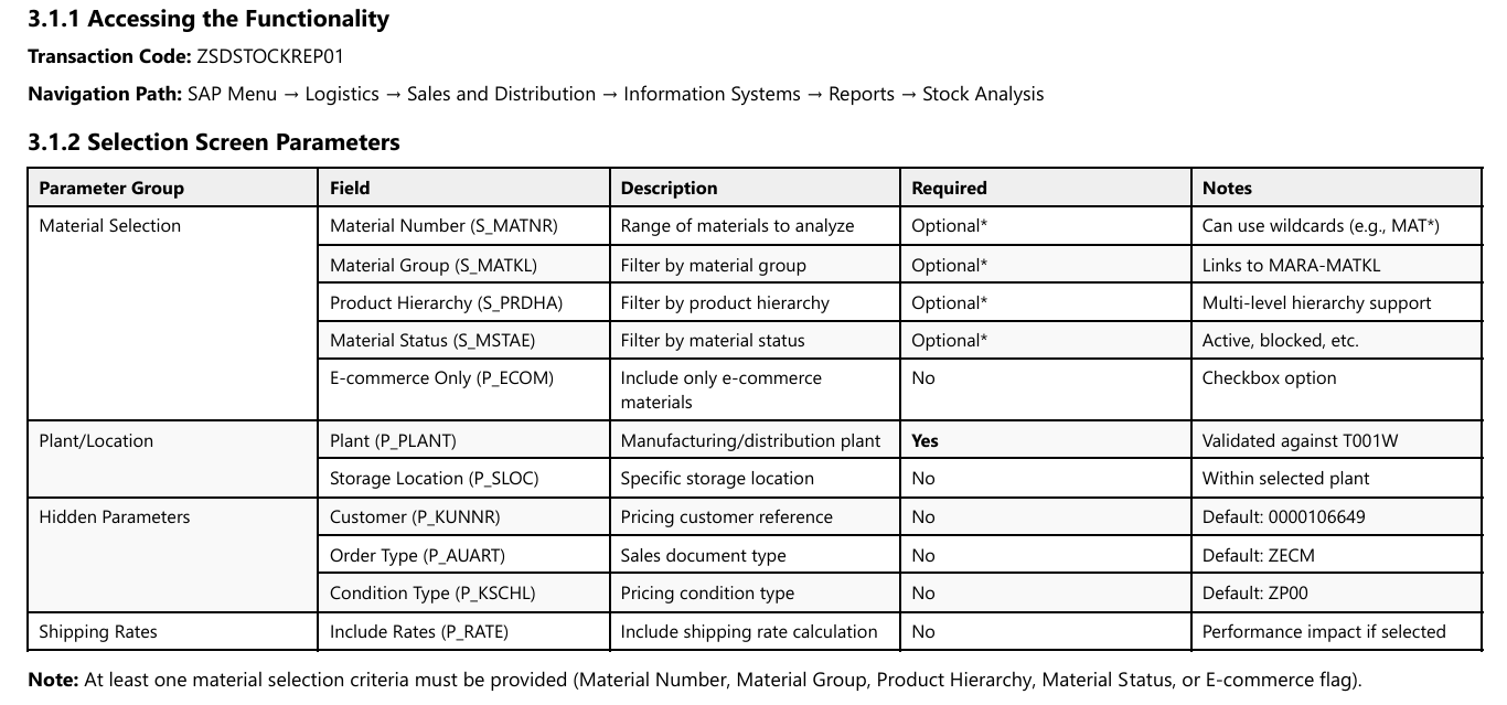 Support Considerations: Guidance for system administrators or BASIS teams on authorizations, performance considerations, and system dependencies.