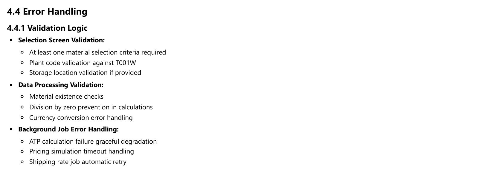 Error Handling Logic: Documentation of how system errors and user errors are processed and communicated.